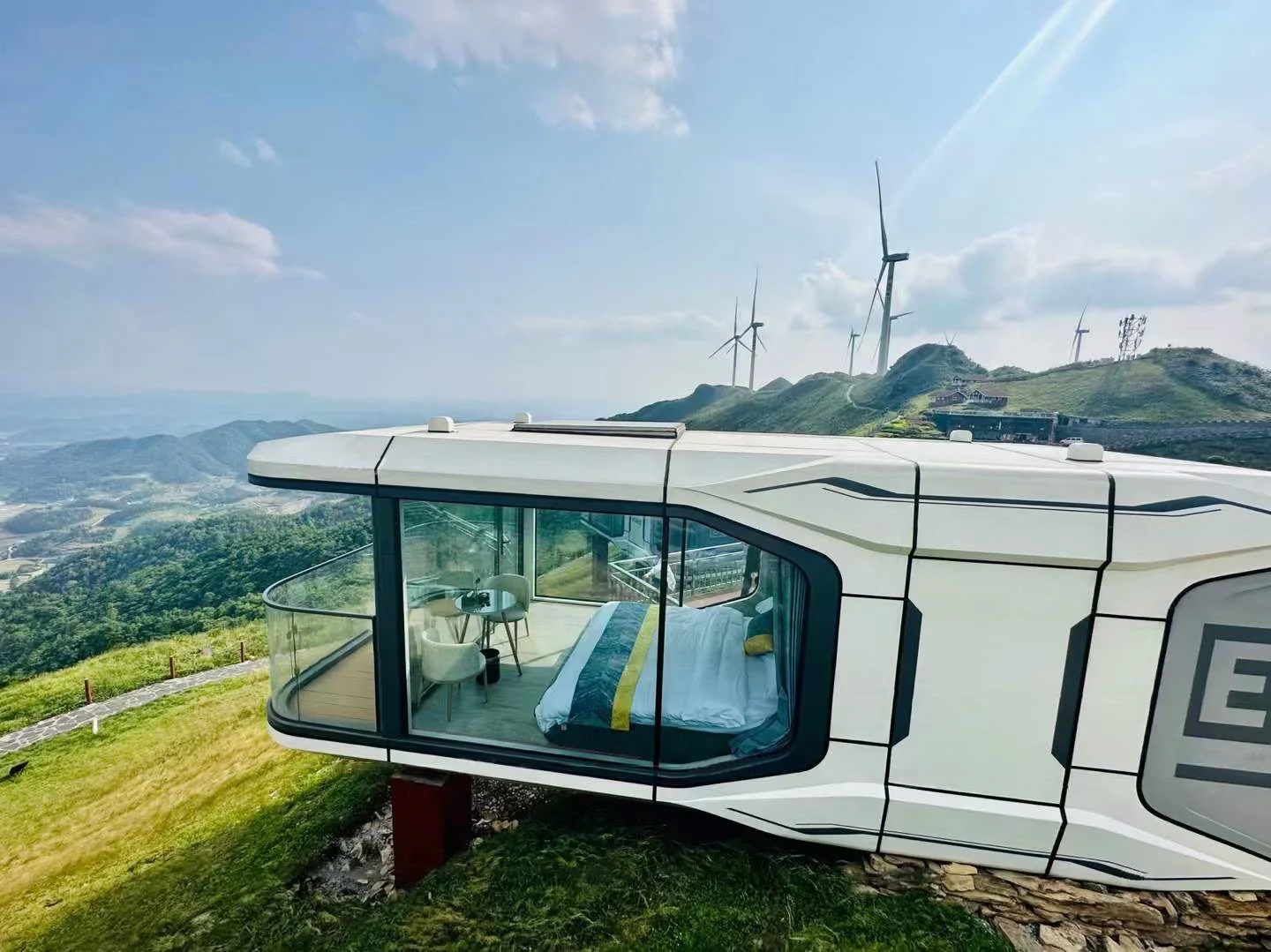 Просторная капсула с возможностью разделения на две функциональные зоны: спальню и гостиную. Внешняя отделка устойчива к перепадам температуры, что делает модель подходящей для круглогодичного использования.